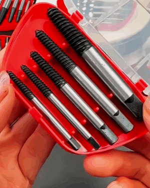 Екстрактори виготовлені з легованої сталі, що найчастіше використовується для виробництва інструментів. Набір забезпечує обережне вилучення пошкоджених гвинтів, болтів, шпильок тощо